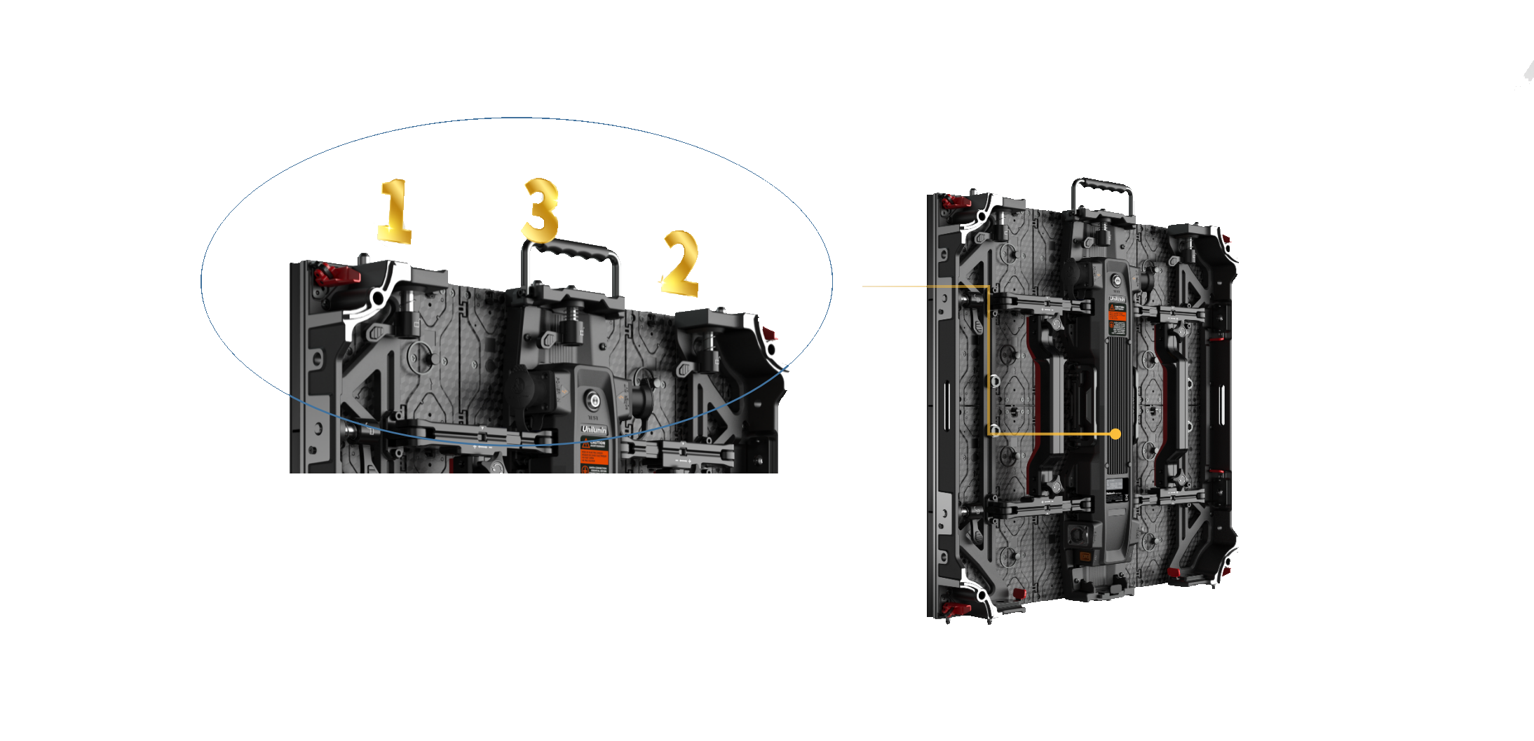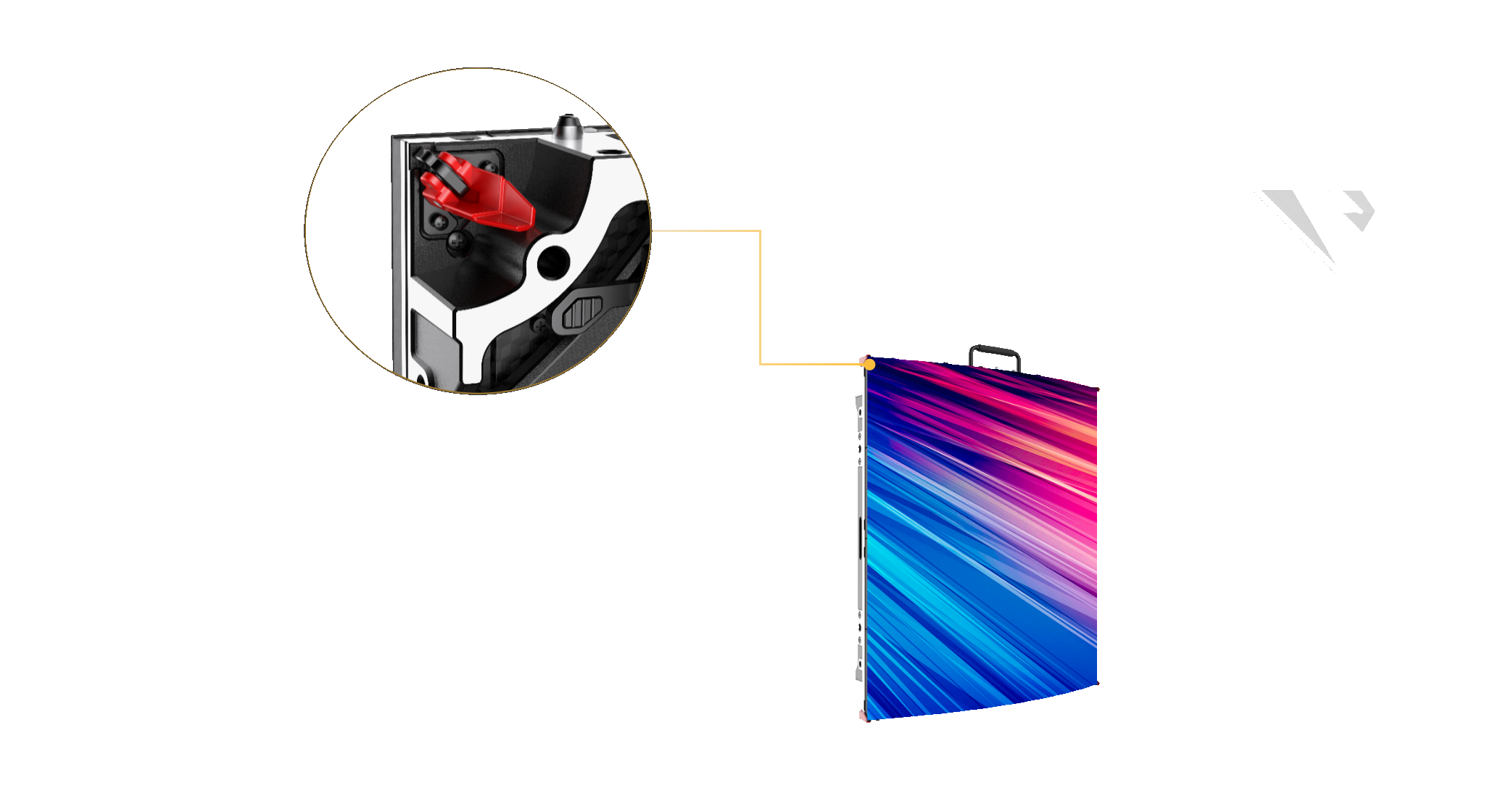 箱體頂部配備3把鎖扣,緊拉屏體不下墜,10倍安全系數(shù)下吊裝10米,更穩(wěn)固更安全。